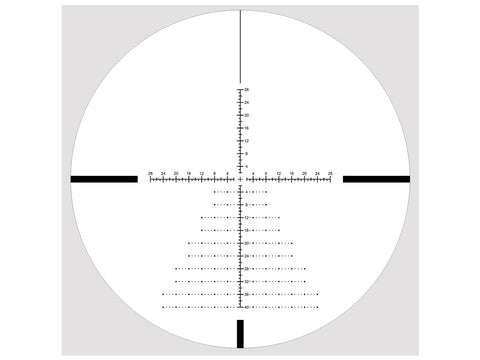 - Elevation range: 100 MOA with 25 MOA revolutions in 1/4 MOA increments
